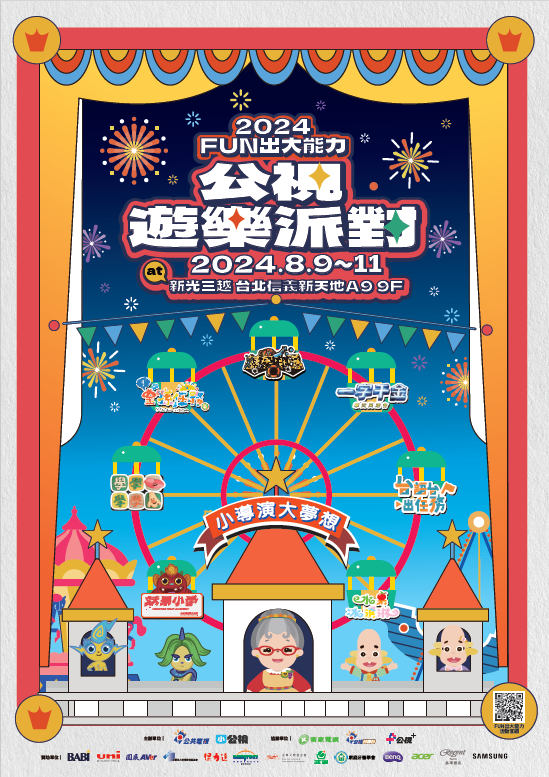 一、 | 公視第五屆年度兒童品牌活動【FUN出大能力】公視遊樂派對,集結公視、公視台語台、客家台旗下優質兒童節目,今年更有新開台的生力軍小公視新製節目加入一起共襄盛舉。【FUN出大能力】公視遊樂派對,8月9日(五)-8月11日(日)三天,在「新光三越 台北信義新天地A9 9F」(地址:台北市信義區松壽路9號9F) |
