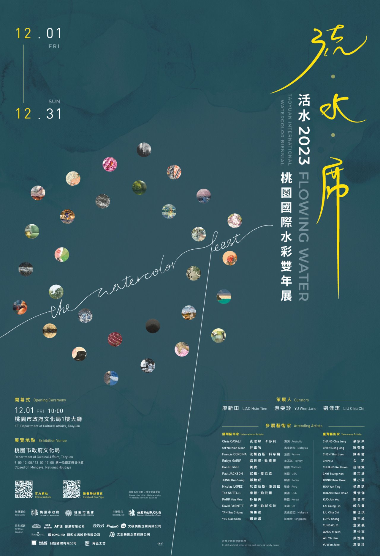 | 一、 | 本屆展覽以「流.水.席」為主題,匯聚了來自秘魯、澳洲、美國、英國、法國、土耳其、新加坡、馬來西亞、越南、韓國等國際13位及臺灣17位水彩名家,總計展出114件精彩創作。 |