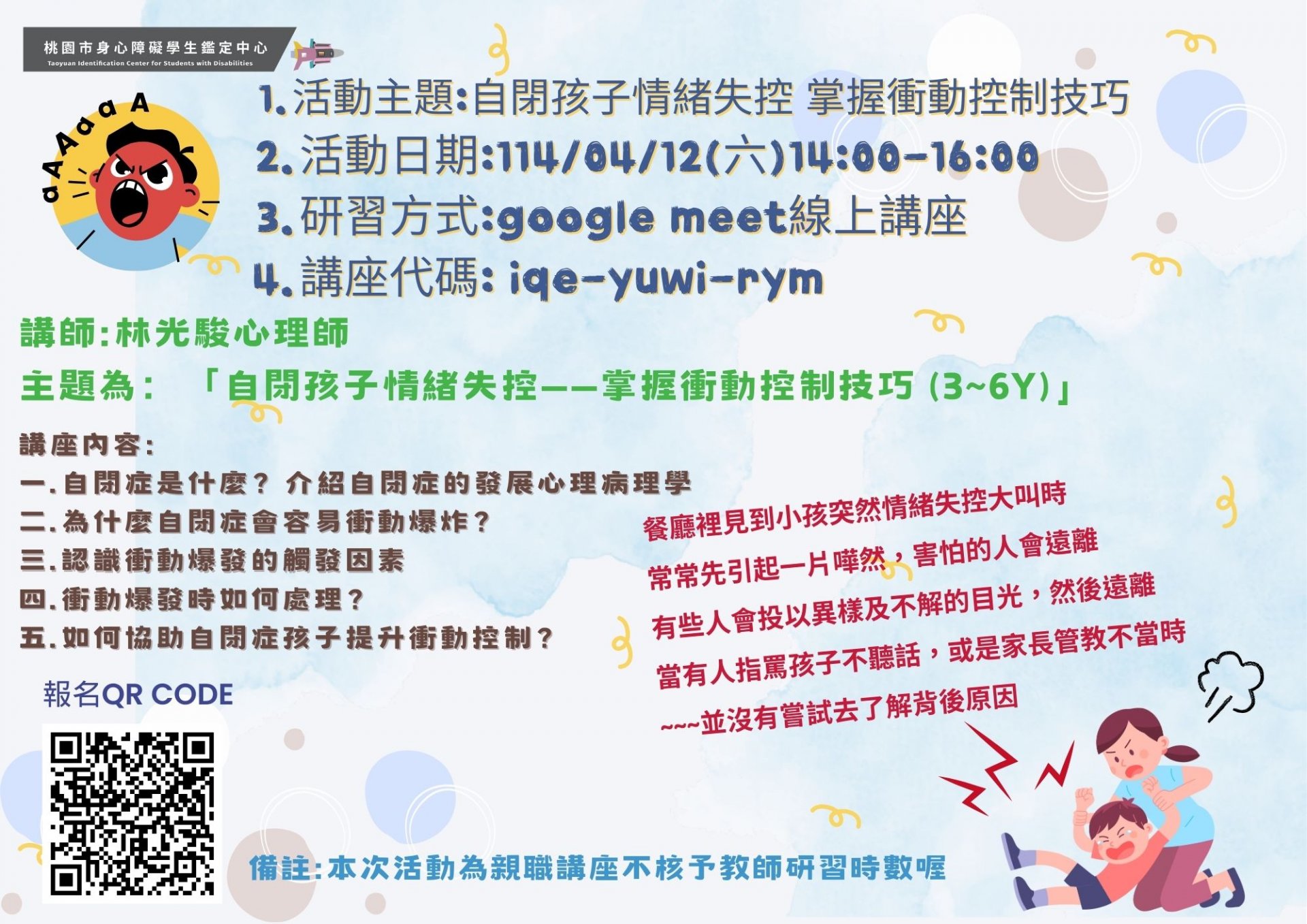 1.活動主題:自閉孩子情緒失控 掌握衝動控制技巧