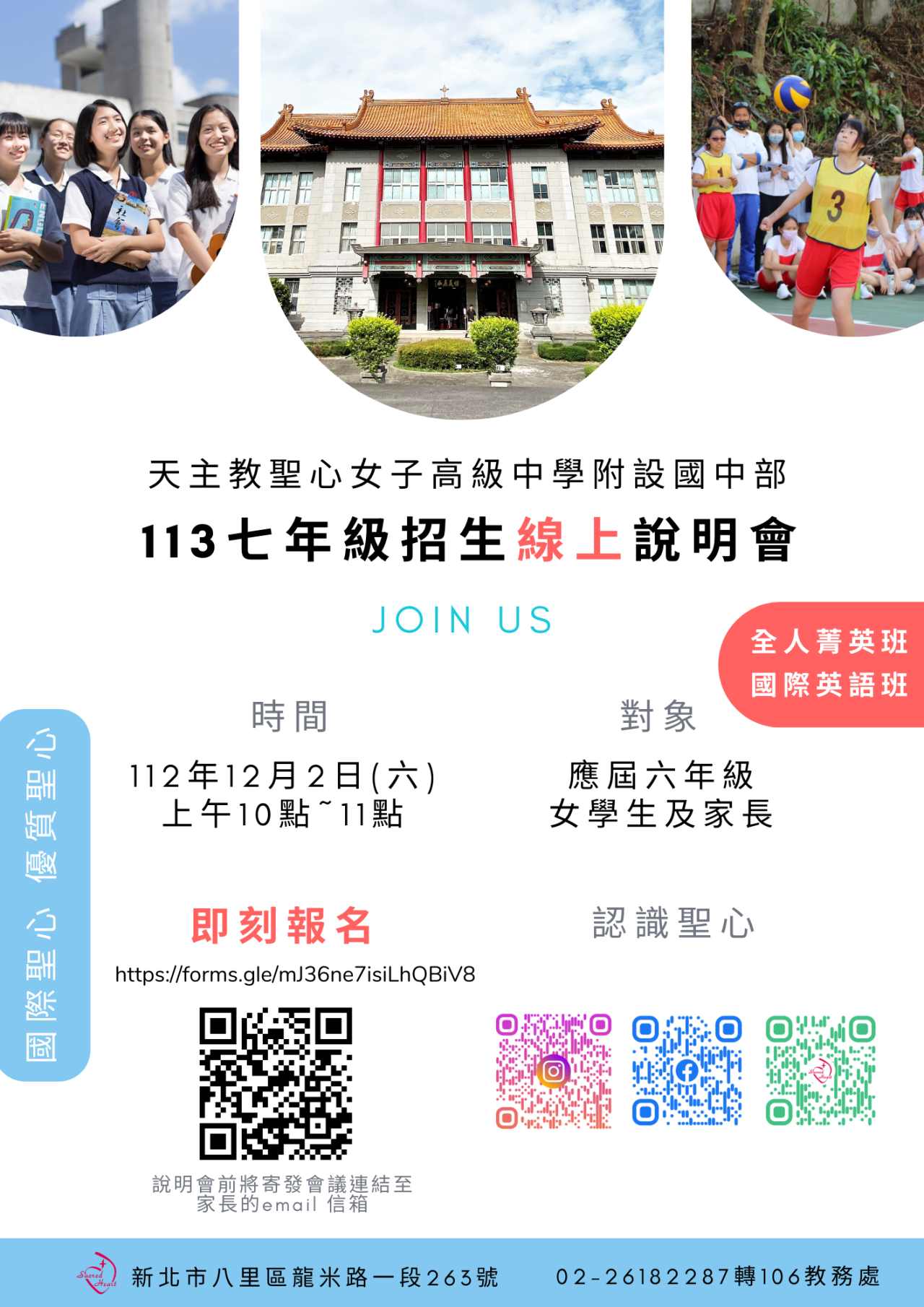 (二) 聖心女中首頁http://www.shgsh.ntpc.edu.tw—最新消息--113七年級招生線上說明會